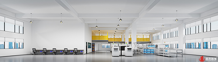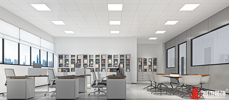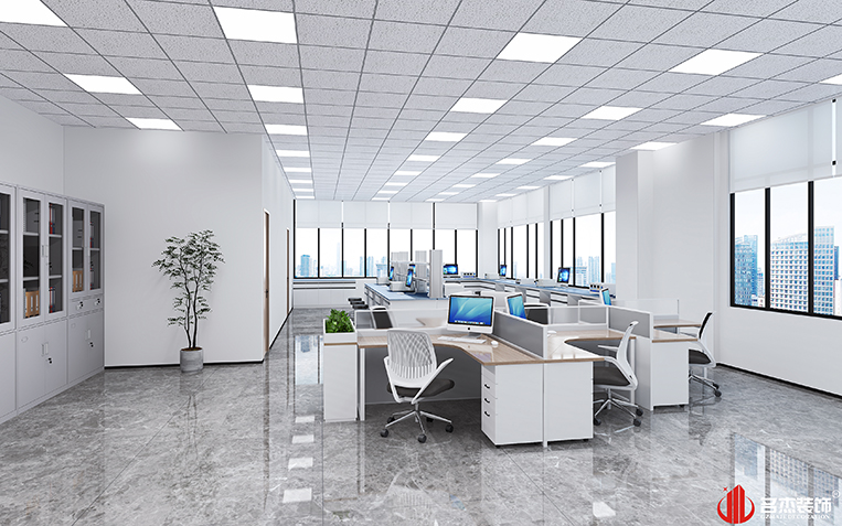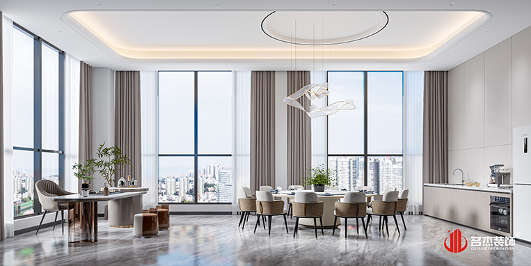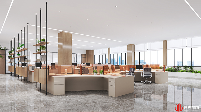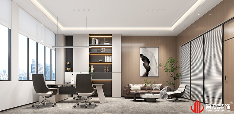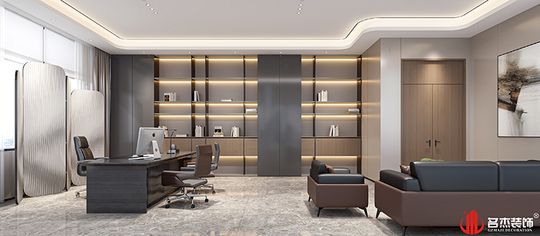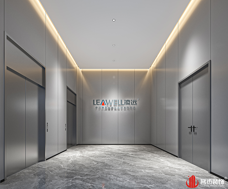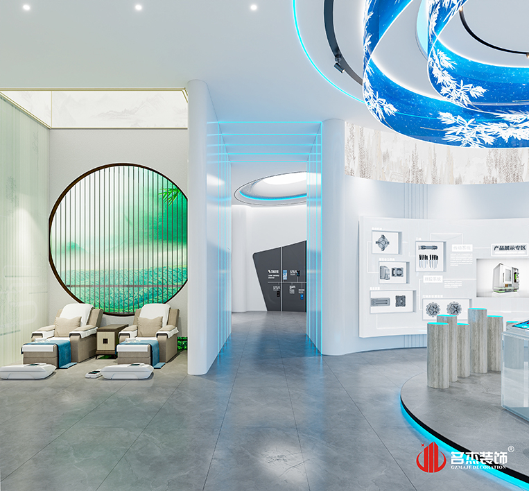 设计团队在展厅区域使用具有科技元素的蓝色,作为该空间的主导色,配合圆弧型的吊顶造型,让空间具有科技感的同时,还能具有设计层次感。而且前台区域的设计中,让企业LOGO色作为空间的点缀色,使用在前台桌子上,搭配造型感十足的吊顶,让空间更具有设计层次感。#广州办公室装修#